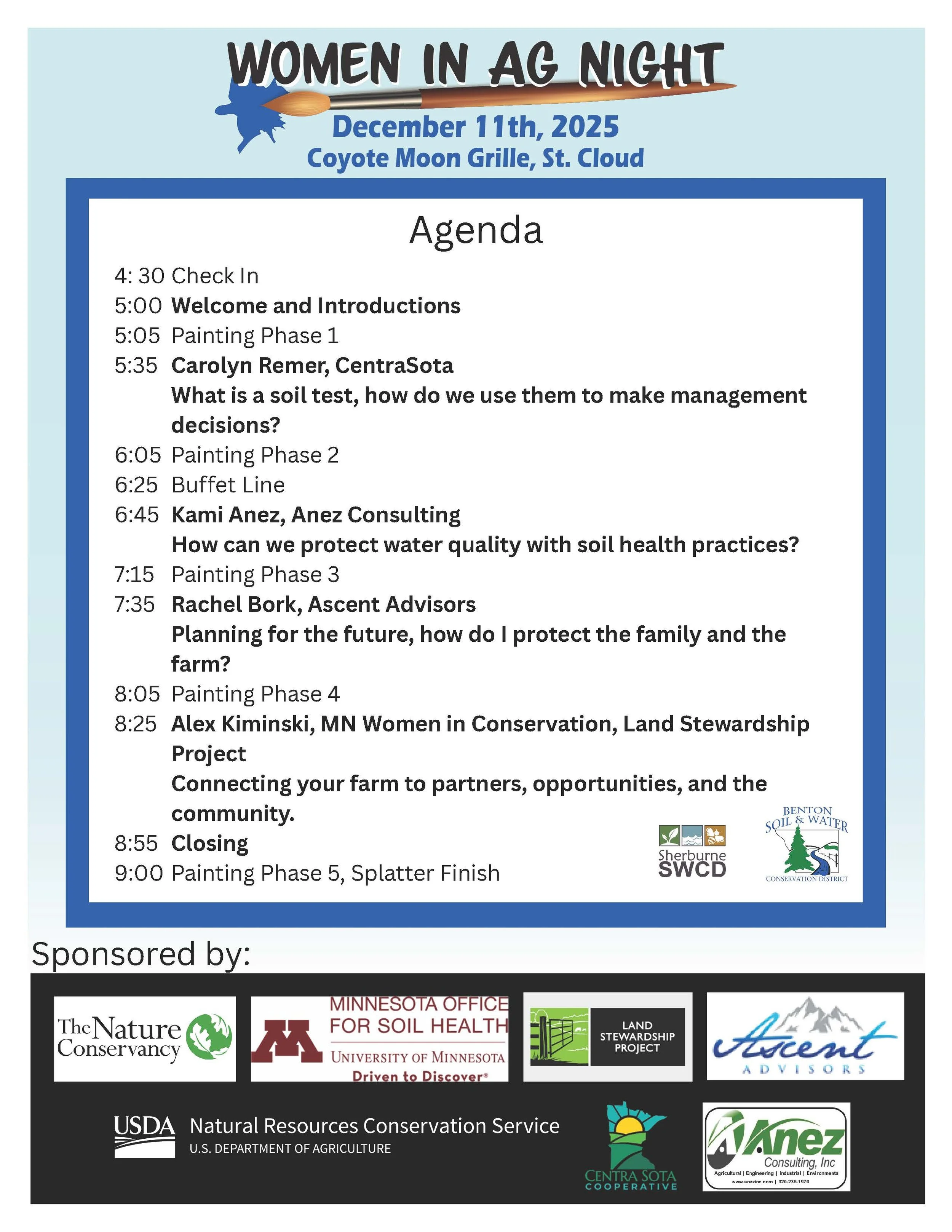 Come for a fun evening embracing your inner artist with a paint night. Enjoy dinner while listening to speakers on farm planning and soil health.